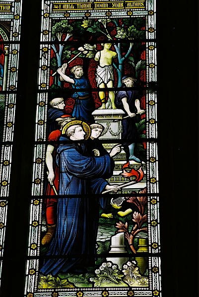 St Benedict's window - St Benedict supervising the clearance of pagan statues to make way for the monastery on Monte Cassino